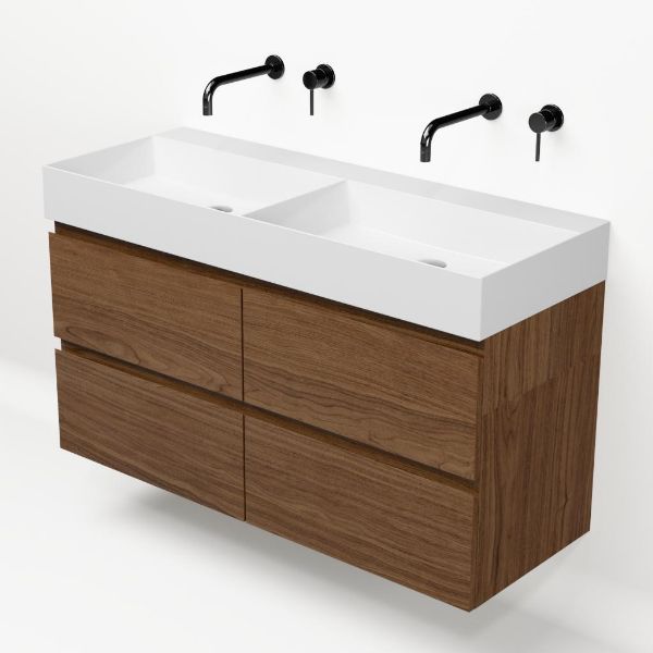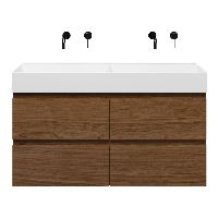 Bellanti Elena/Azzurra badmeubel 120x46 4 softclose laden warm noten greeploos keramische wastafel dubbel wit glans zonder kraangaten