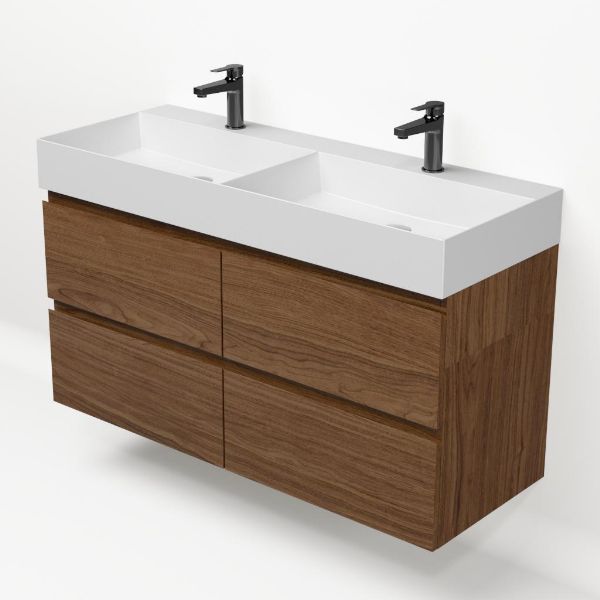 Bellanti Elena/Azzurra badmeubel 120x46 4 softclose laden warm noten greeploos keramische wastafel dubbel wit mat met 2 kraangaten