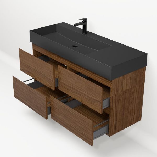 Bellanti Elena/Azzurra badmeubel 120x46 4 softclose laden warm noten greeploos keramische wastafel links zwart mat met 1 kraangat