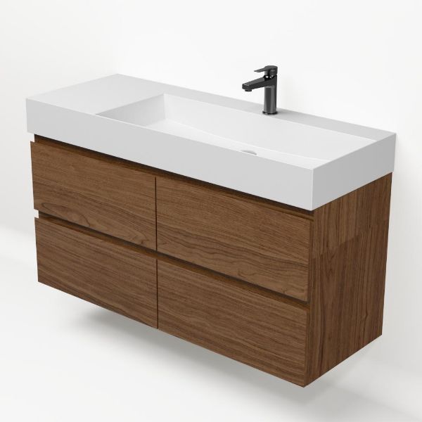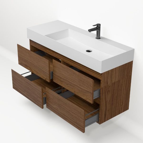 Bellanti Elena/Azzurra badmeubel 120x46 4 softclose laden warm noten greeploos keramische wastafel rechts mat wit met 1 kraangat