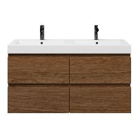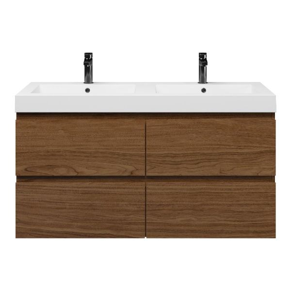 Bellanti Elena/Esta badmeubel 120x46 4 softclose laden warm noten greeploos polystone wastafel dubbel wit met 2 kraangaten