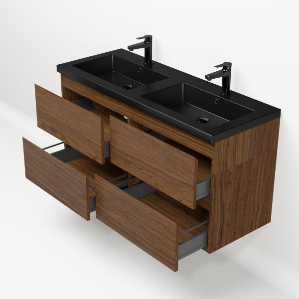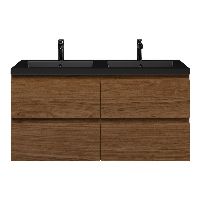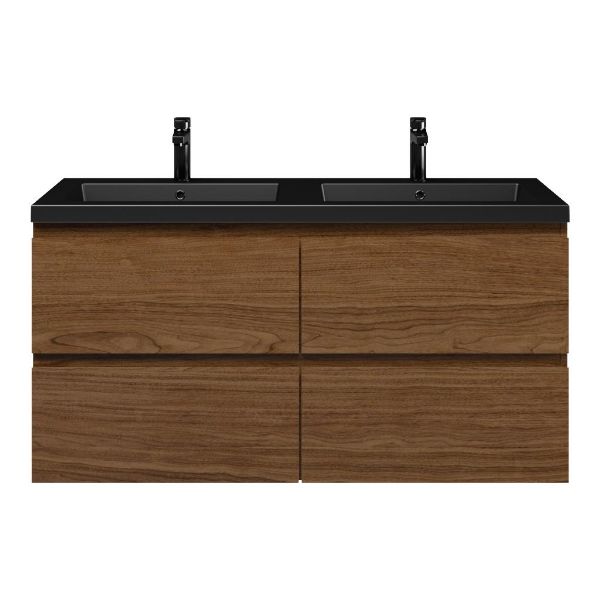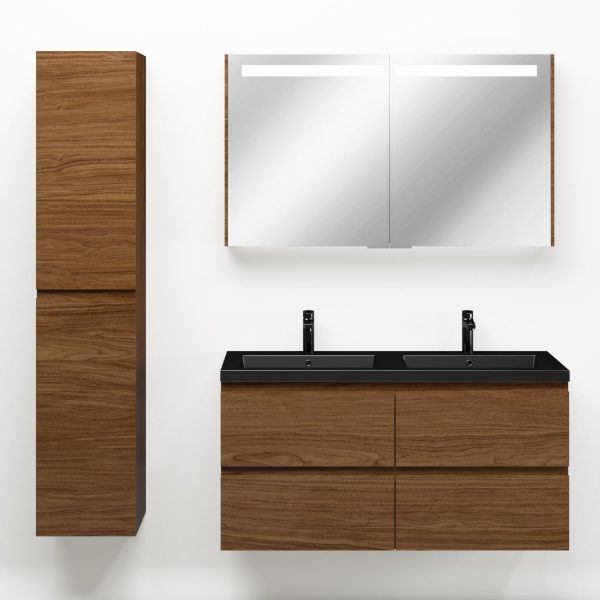 Bellanti Elena/Esta badmeubel 120x46 4 softclose laden warm noten greeploos polystone wastafel dubbel mat zwart met 2 kraangaten