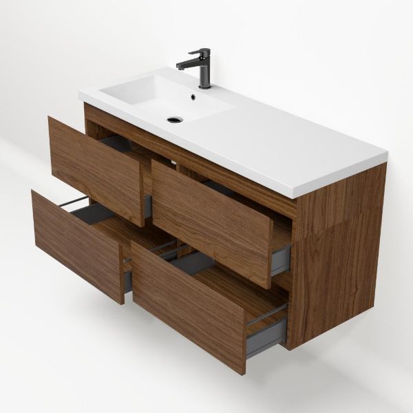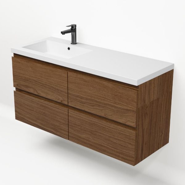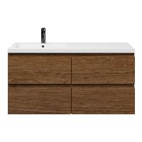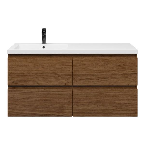 Bellanti Elena/Esta badmeubel 120x46 4 softclose laden warm noten greeploos polystone wastafel wit met 1 kraangat