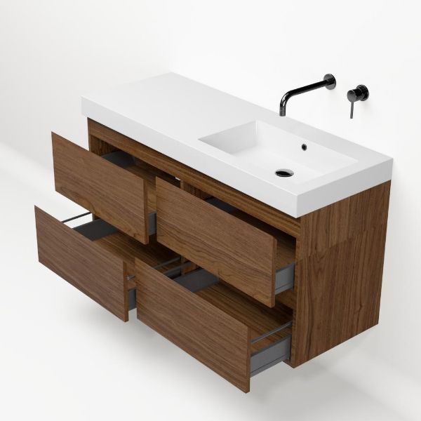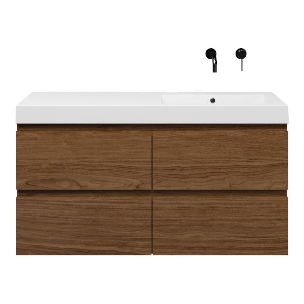 Bellanti Elena/Esta badmeubel 120x46 4 softclose laden warm noten greeploos polystone wastafel wit zonder kraangaten