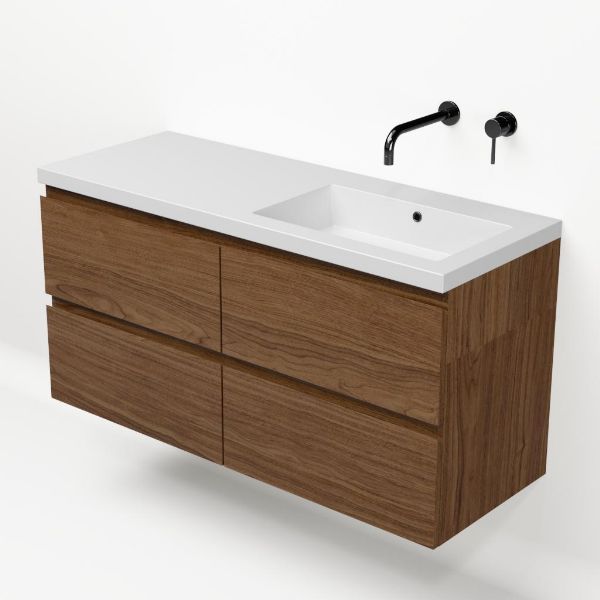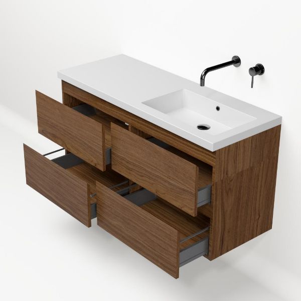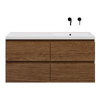 Bellanti Elena/Esta-Q badmeubel 120x46 4 softclose laden warm noten greeploos polystone wastafel mat wit rechts zonder kraangaten