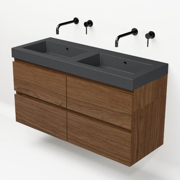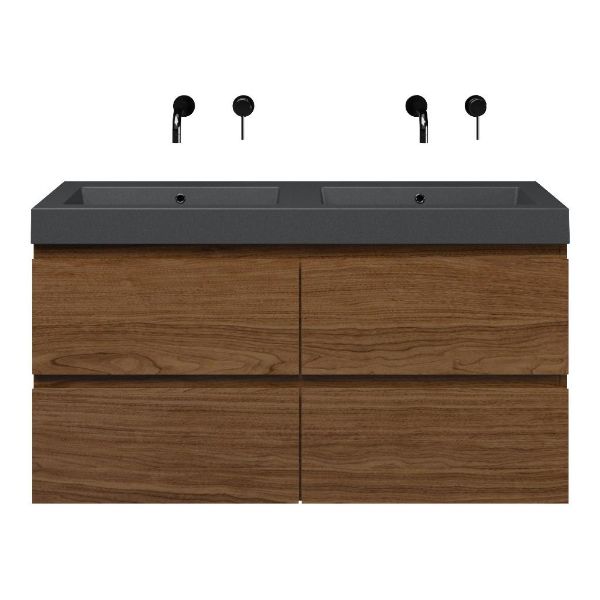 Bellanti Elena/Esta-Q badmeubel 120x46 4 softclose laden warm noten greeploos quartz wastafel dubbel mat grijs zonder kraangaten