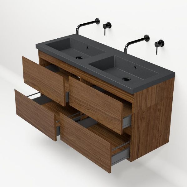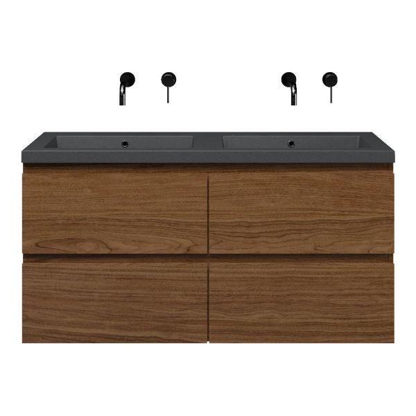 Bellanti Elena/Esta-Q badmeubel 120x46 4 softclose laden warm noten greeploos quartz wastafel dubbel mat grijs zonder kraangaten