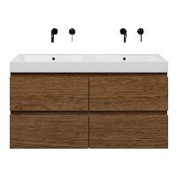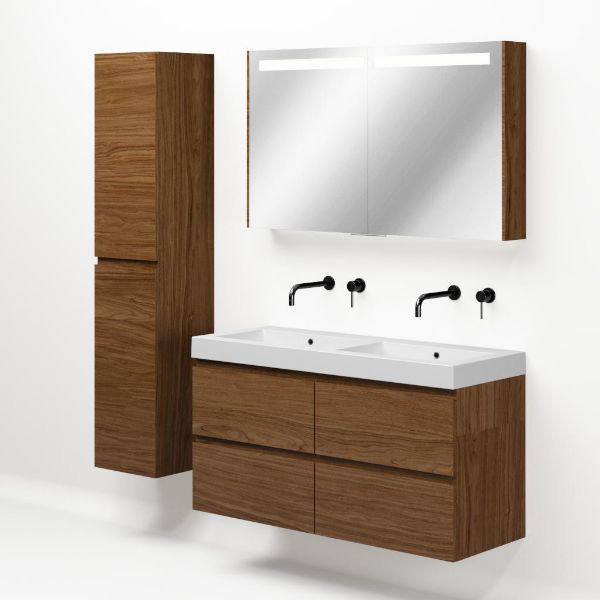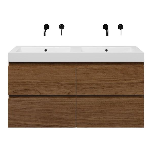Bellanti Elena/Esta-Q badmeubel 120x46 4 softclose laden warm noten greeploos quartz wastafel dubbel mat wit zonder kraangaten