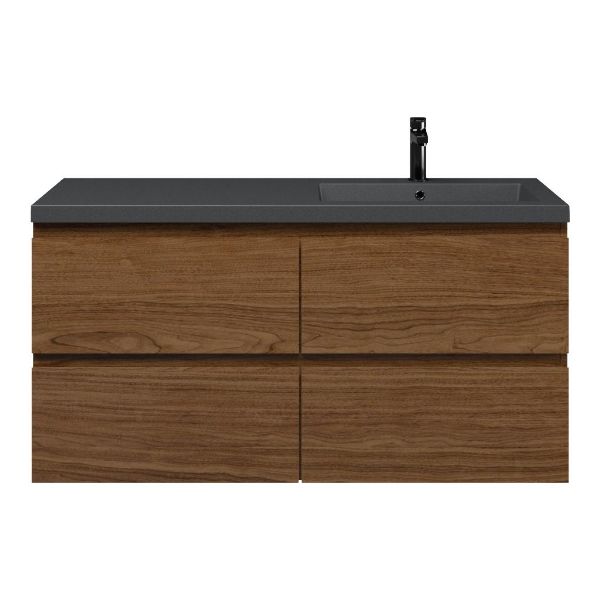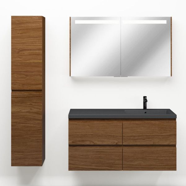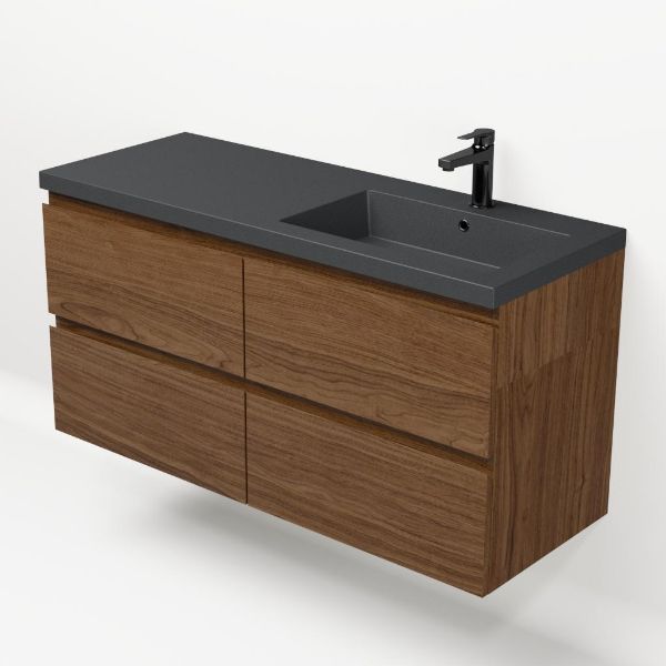 Bellanti Elena/Esta-q badmeubel 120x46 4 softclose laden warm noten greeploos quartz wastafel mat grijs rechts met 1 kraangat