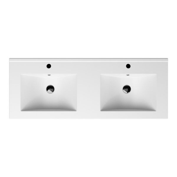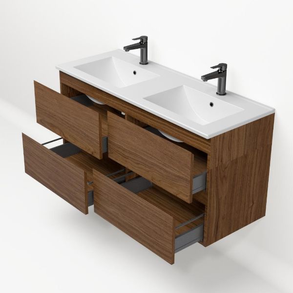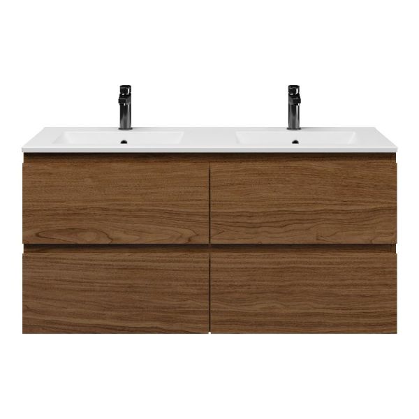 Bellanti Elena/Faro badmeubel 120x46 4 softclose laden warm noten greeploos keramische wastafel dubbel mat wit met 2 kraangaten
