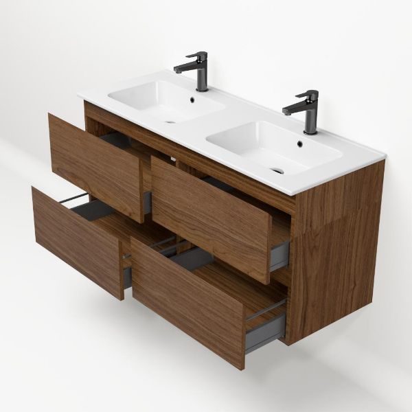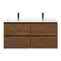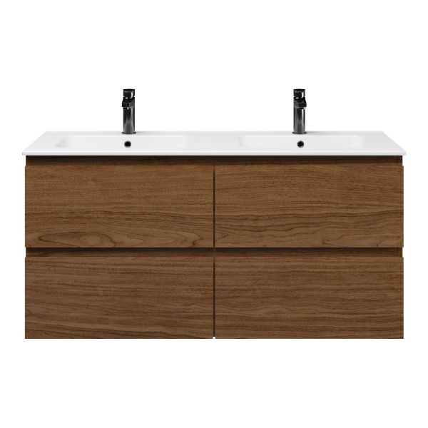 Bellanti Elena/Quadra badmeubel 120x46 4 softclose laden warm noten greeploos keramische wastafel dubbel wit met 2 kraangaten