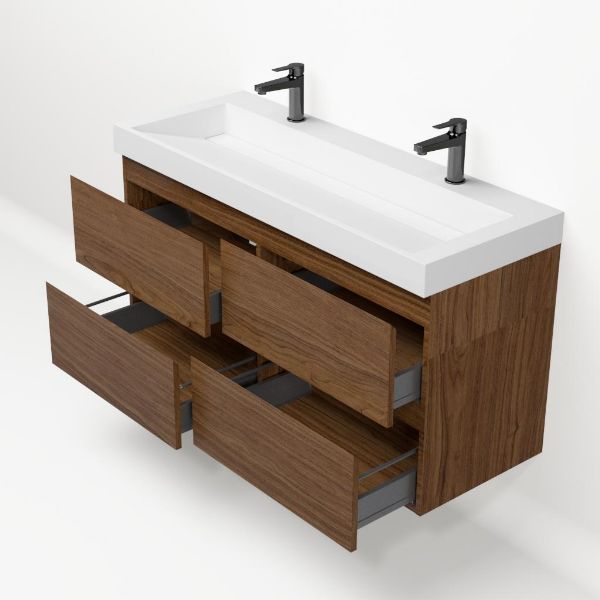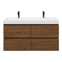 Bellanti Elena/Renzo badmeubel 120x46 4 softclose laden warm noten greeploos polystone wastafel wit met 2 kraangaten