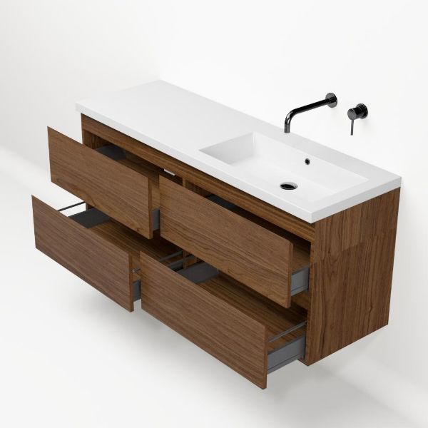 Bellanti Elena/Esta badmeubel 140x46 4 softclose laden warm noten greeploos polystone wastafel wit zonder kraangaten
