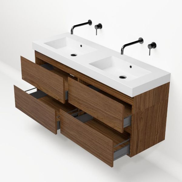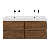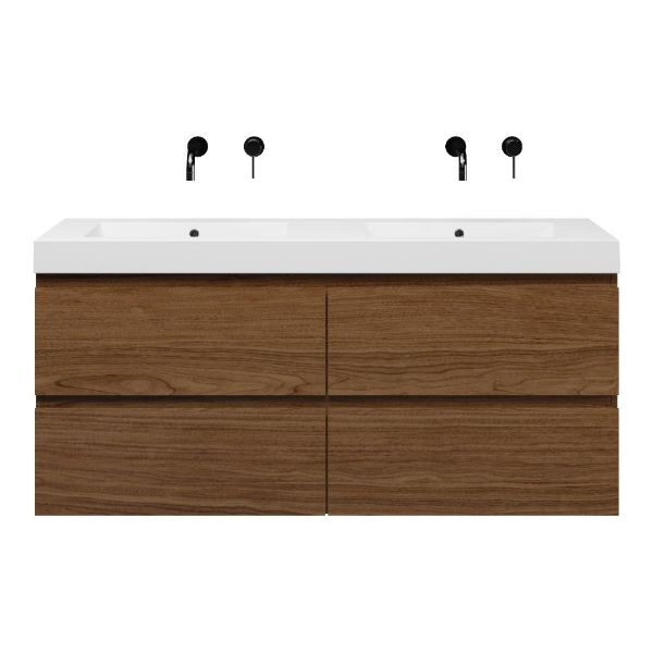 Bellanti Elena/Esta badmeubel 140x46 4 softclose laden warm noten greeploos polystone wastafel dubbel wit zonder kraangaten