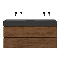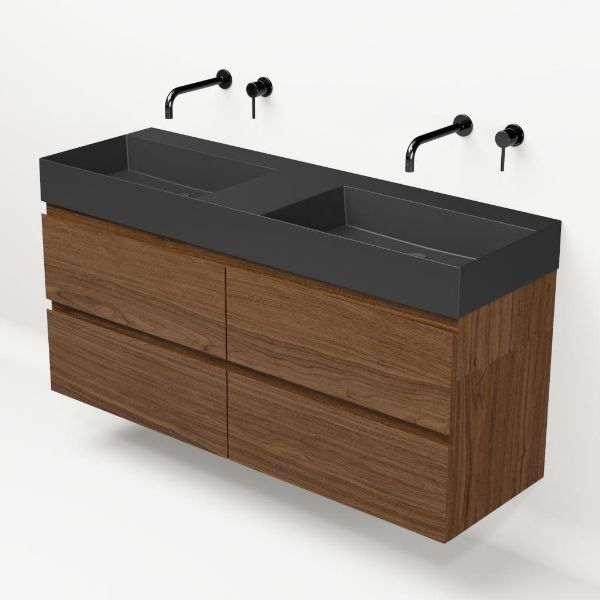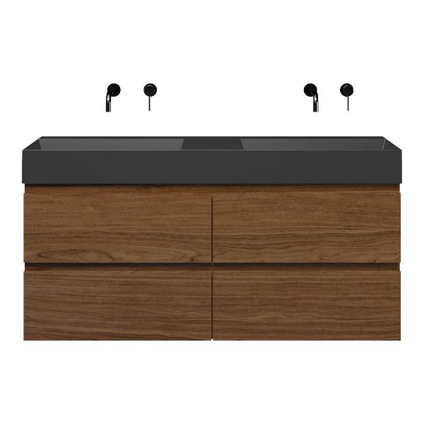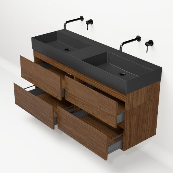 Bellanti Elena/Azzurra badmeubel 140x46 4 softclose laden warm noten greeploos keramische wastafel dubbel zwart mat zonder kraangaten