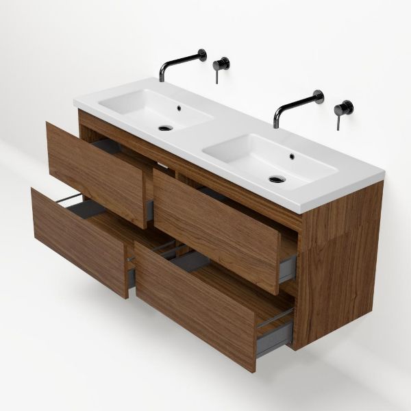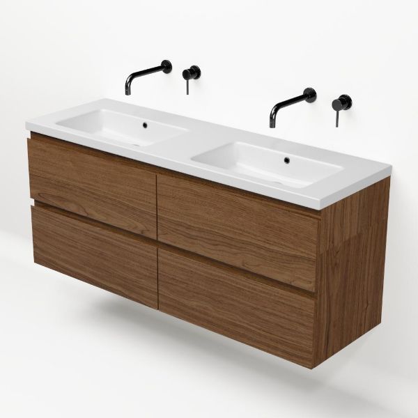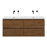 Bellanti Elena/Amelia badmeubel 140x46 4 softclose laden warm noten greeploos keramiek wastafel dubbel mat wit zonder kraangaten