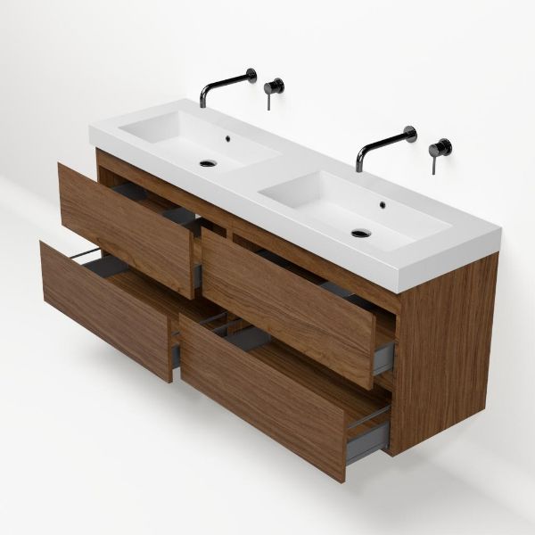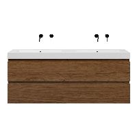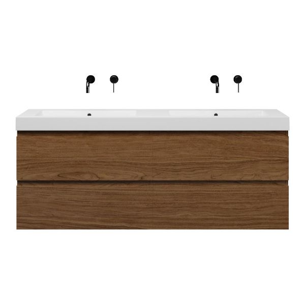 Bellanti Elena/Esta-Q badmeubel 160x46 4 softclose laden warm noten greeploos quartz dubbele wastafel mat wit zonder kraangaten