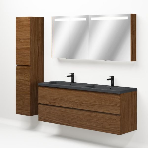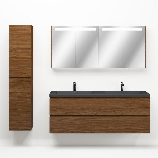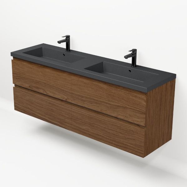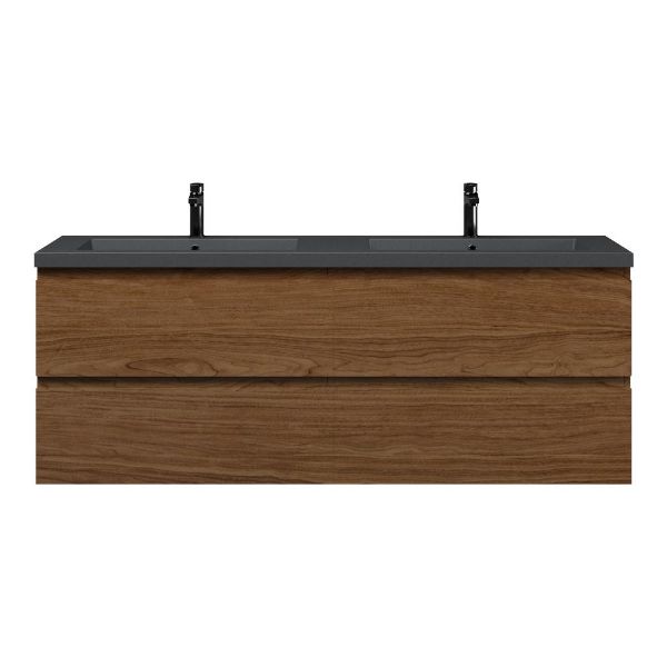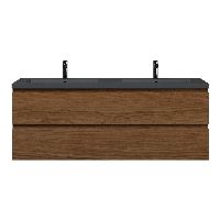 Bellanti Elena/Esta-Q badmeubel 160x46 4 softclose laden warm noten greeploos polystone dubbele wastafel mat grijs 2 kraangaten