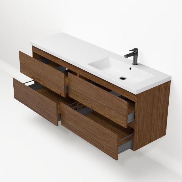 Bellanti Elena/Esta badmeubel 160x46 4 softclose laden warm noten greeploos polystone enkele wastafel rechts wit met 1 kraangat