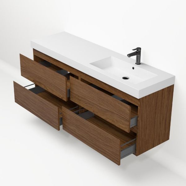 Bellanti Elena/Esta badmeubel 160x46 4 softclose laden warm noten greeploos polystone enkele wastafel rechts wit met 1 kraangat