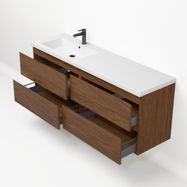 Bellanti Elena/Esta badmeubel 160x46 4 softclose laden warm noten greeploos polystone enkele wastafel links wit met 1 kraangat