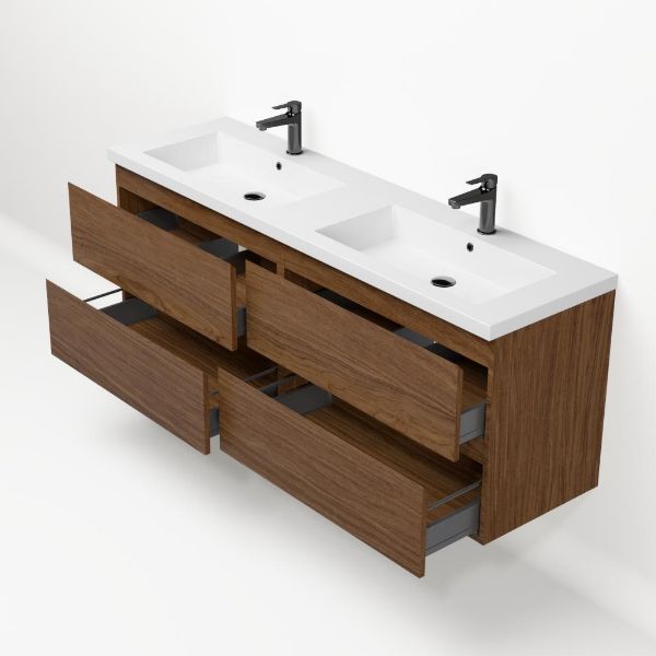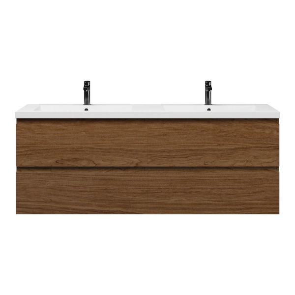 Bellanti Elena/Esta badmeubel 160x46 4 softclose laden warm noten greeploos polystone dubbele wastafel wit 2 kraangaten