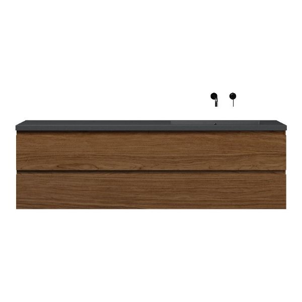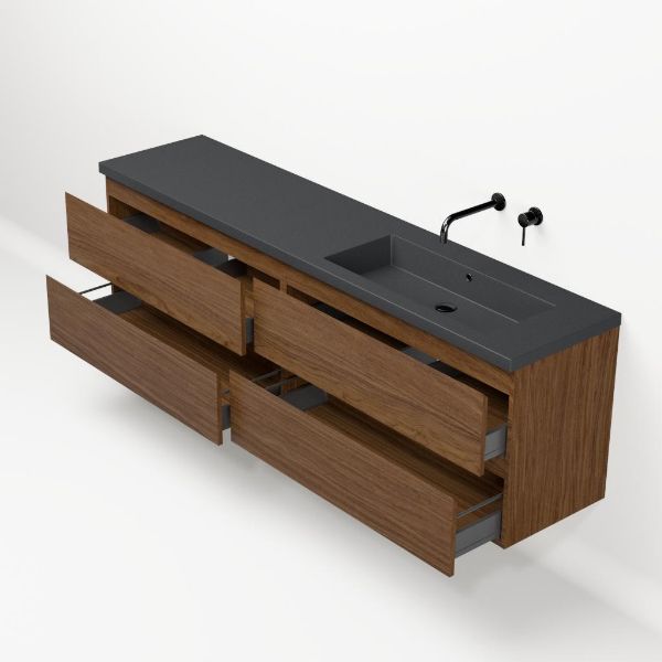 Bellanti Elena/Esta-q badmeubel 200x46 4 softclose laden warm noten greeploos quartz enkele wastafel rechts mat grijs zonder kraangat