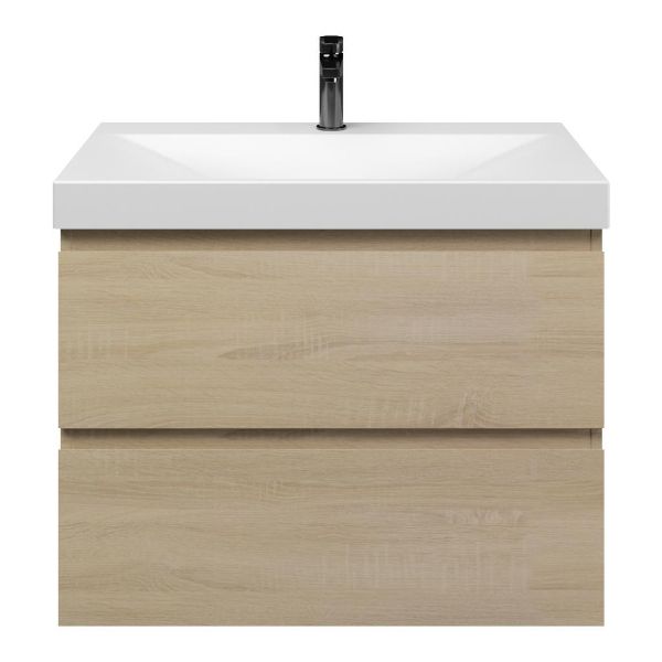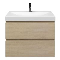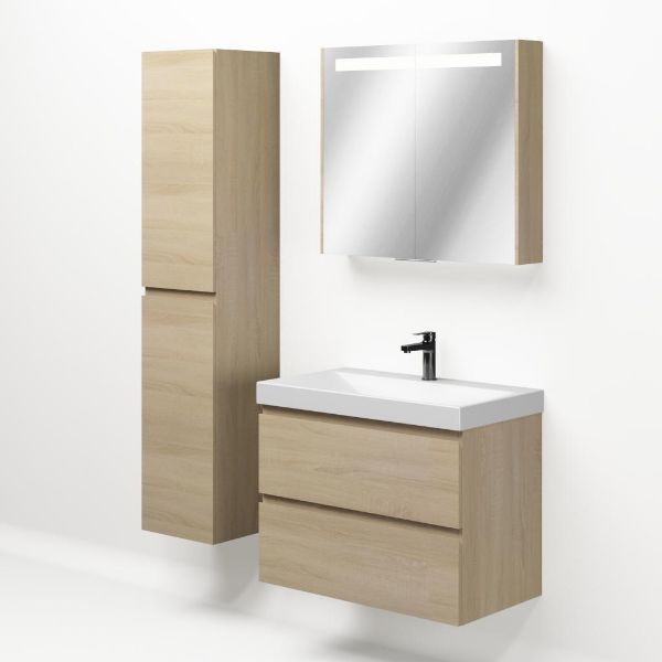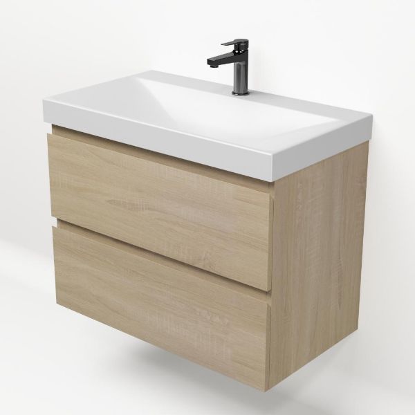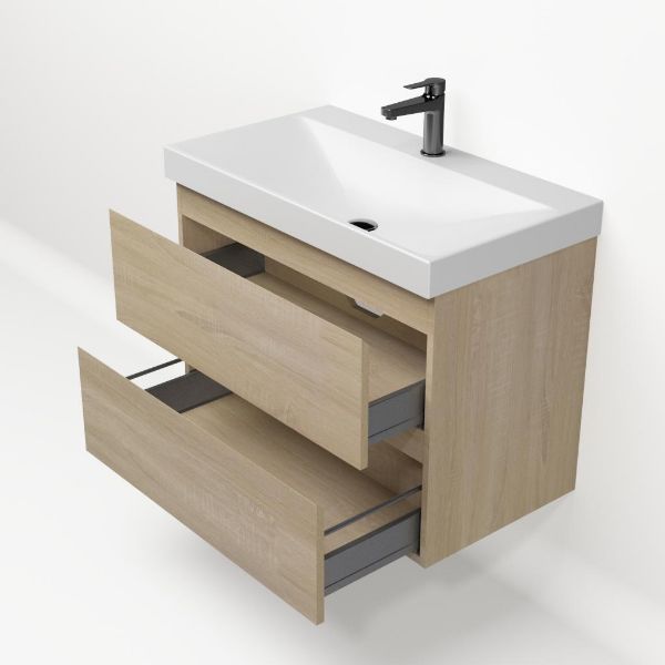 Bellanti Elena/Jenthe badmeubel 80x46 2 softclose laden eiken licht greeploos keramische wastafel wit mat met 1 kraangat