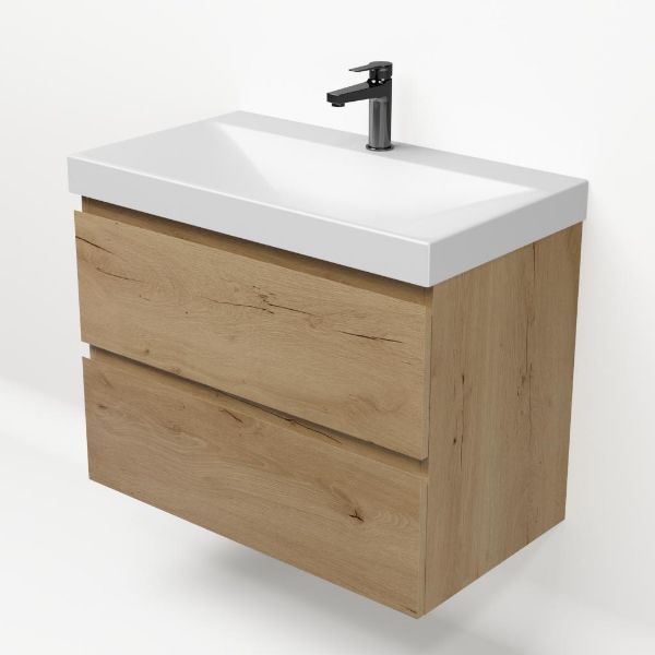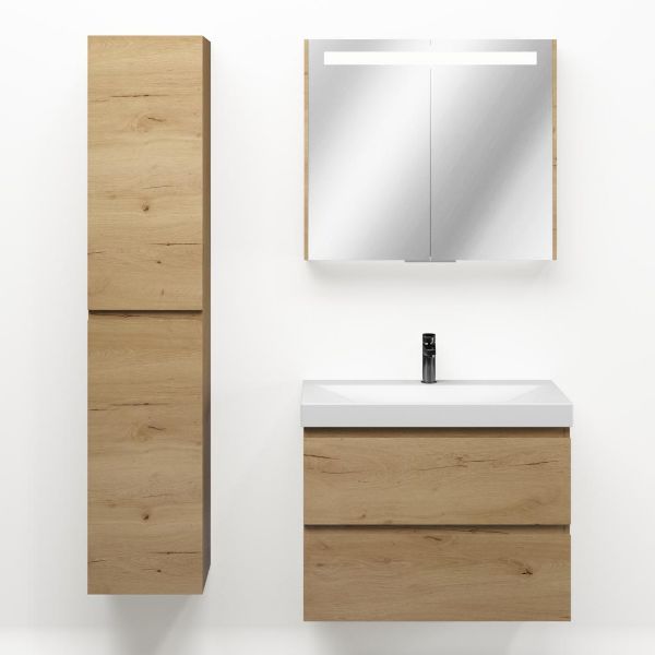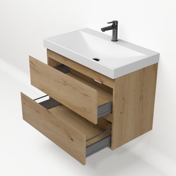 Bellanti Elena/Jenthe badmeubel 80x46 2 softclose laden eiken natuur greeploos keramische wastafel wit glans mat 1 kraangat