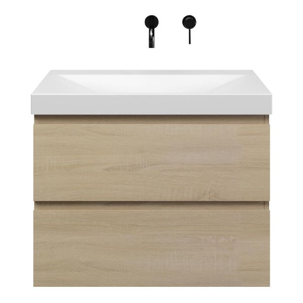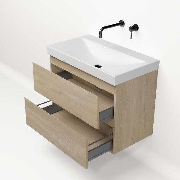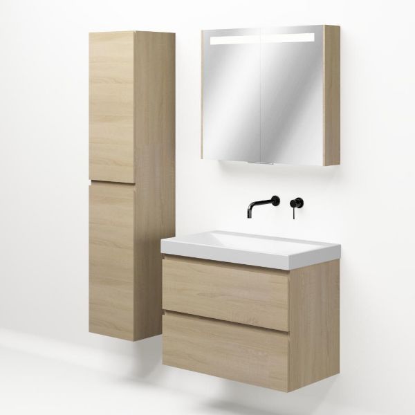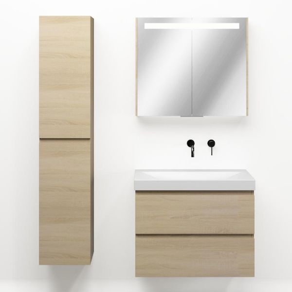 Bellanti Elena/Jenthe badmeubel 80x46 2 softclose laden eiken licht greeploos keramische wastafel wit mat zonder kraangaten