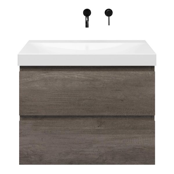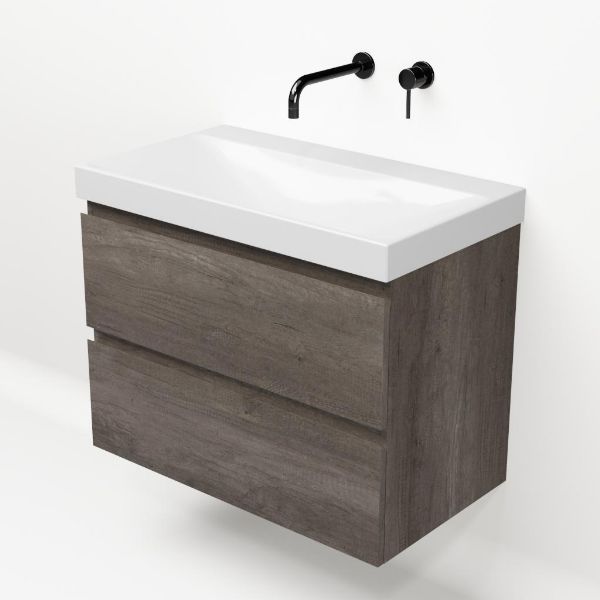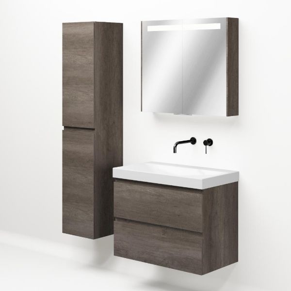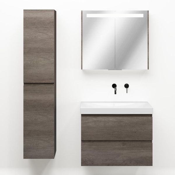 Bellanti Elena/Jenthe badmeubel 80x46 2 softclose laden olm donker grijs greeploos keramische wastafel wit glans zonder kraangaten