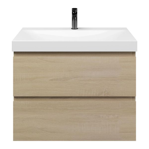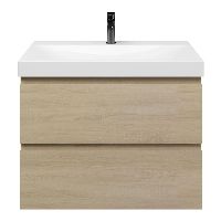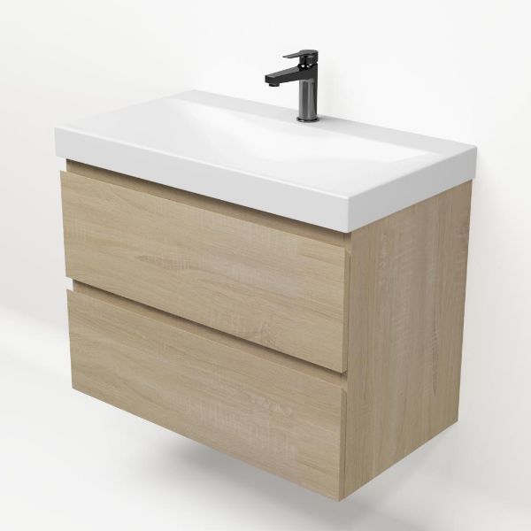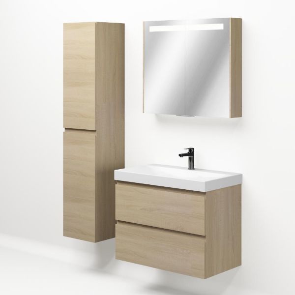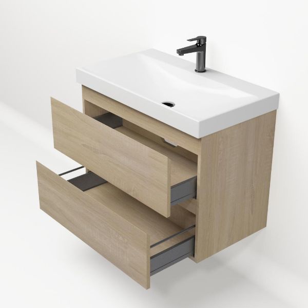 Bellanti Elena/Jenthe badmeubel 80x46 2 softclose laden eiken licht greeploos keramische wastafel wit glans met 1 kraangat