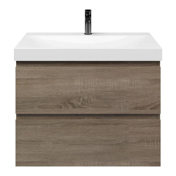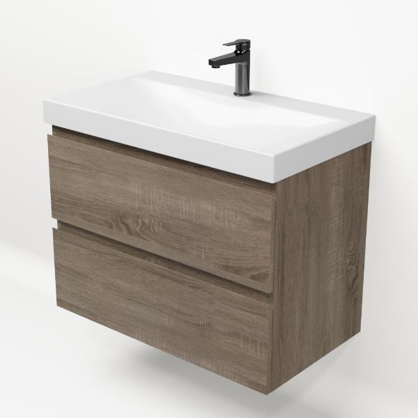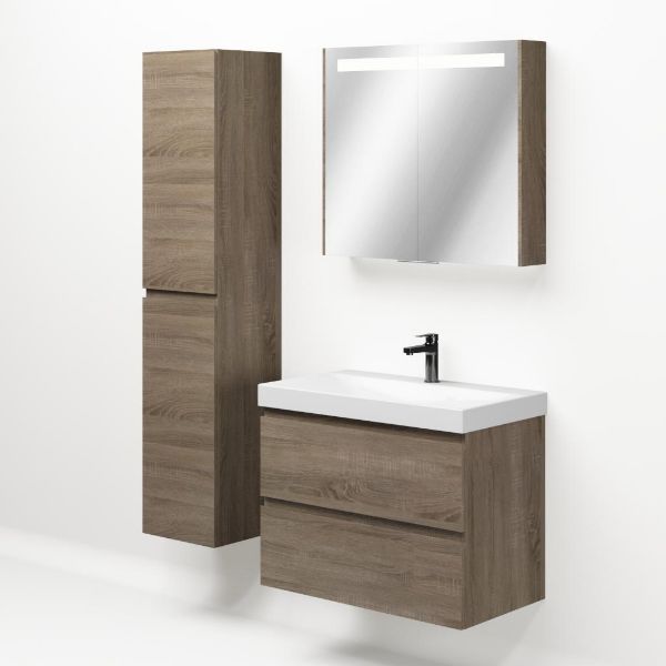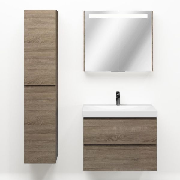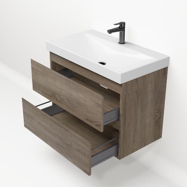 Bellanti Elena/Jenthe badmeubel 80x46 2 softclose laden eiken donker greeploos keramische wastafel wit glans met 1 kraangat