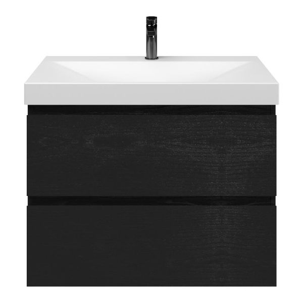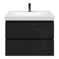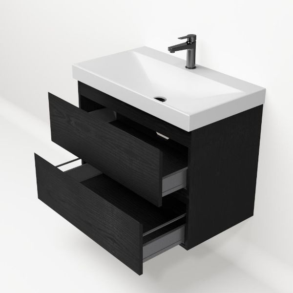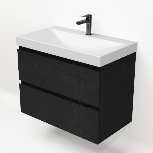 Bellanti Gisella/Jenthe badmeubel 80x46 2 softclose laden zwart mat eiken greeploos keramische wastafel wit mat met 1 kraangat