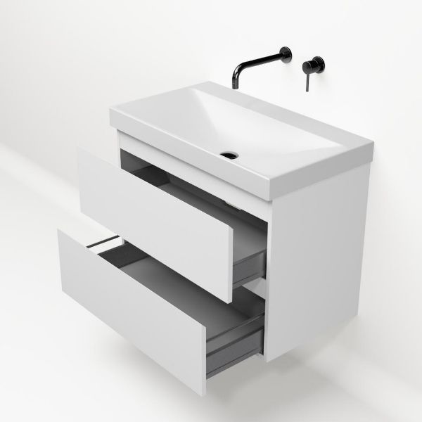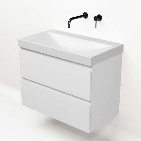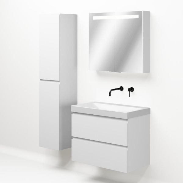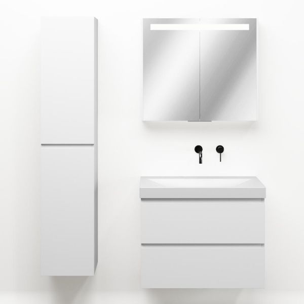 Bellanti Gisella/Jenthe badmeubel 80x46 2 softclose laden wit mat greeploos keramische wastafel wit mat zonder kraangaten