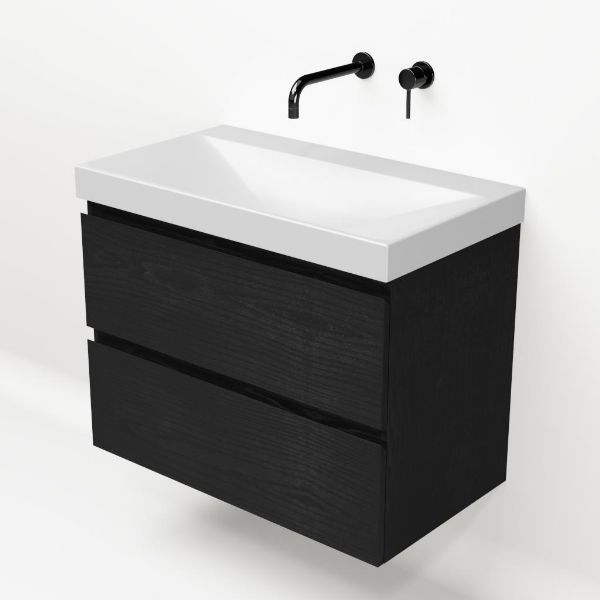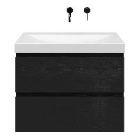 Bellanti Gisella/Jenthe badmeubel 80x46 2 softclose laden zwart mat eiken greeploos keramische wastafel wit mat zonder kraangaten