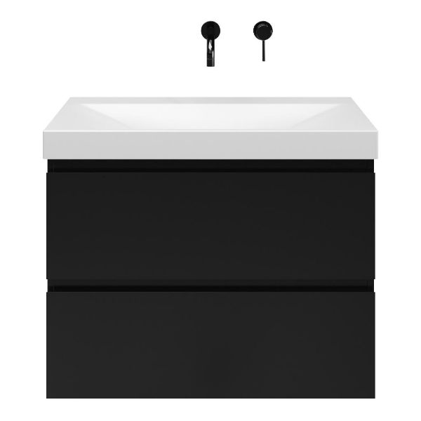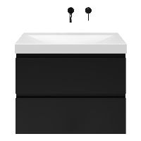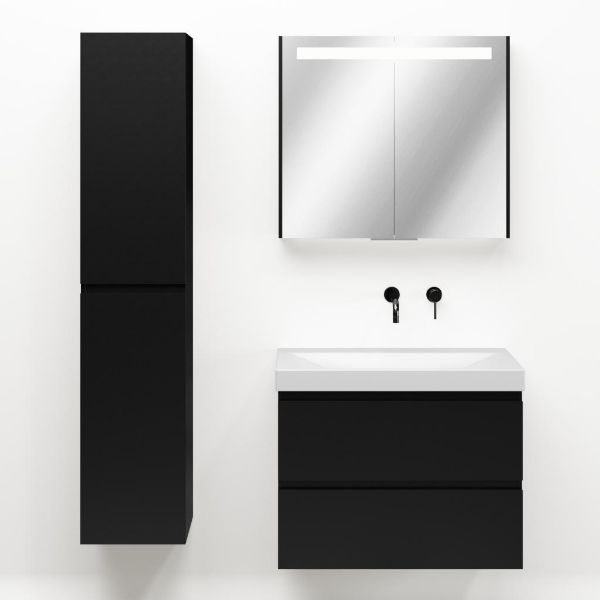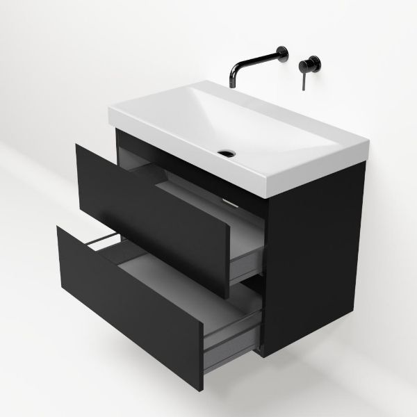 Bellanti Gisella/Jenthe badmeubel 80x46 2 softclose laden zwart mat greeploos keramische wastafel wit mat zonder kraangaten