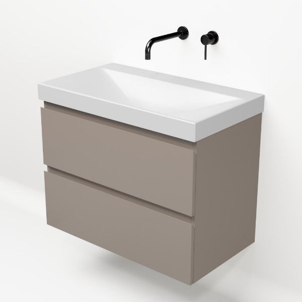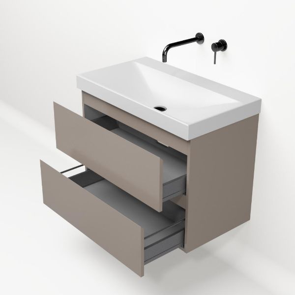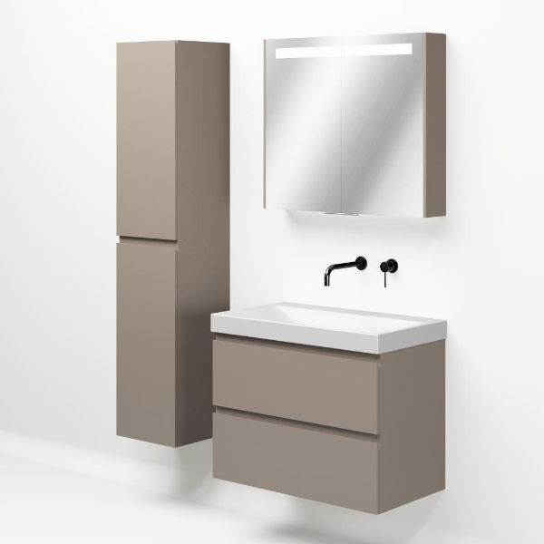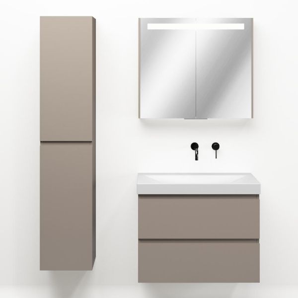 Bellanti Gisella/Jenthe badmeubel 80x46 2 softclose laden taupe greeploos keramische wastafel wit mat zonder kraangaten