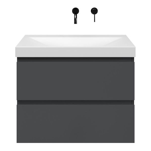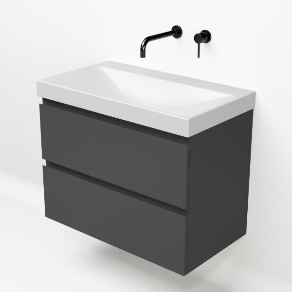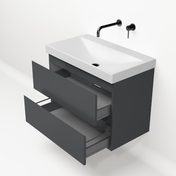 Bellanti Gisella/Jenthe badmeubel 80x46 2 softclose laden antraciet mat greeploos keramische wastafel wit mat zonder kraangaten