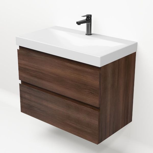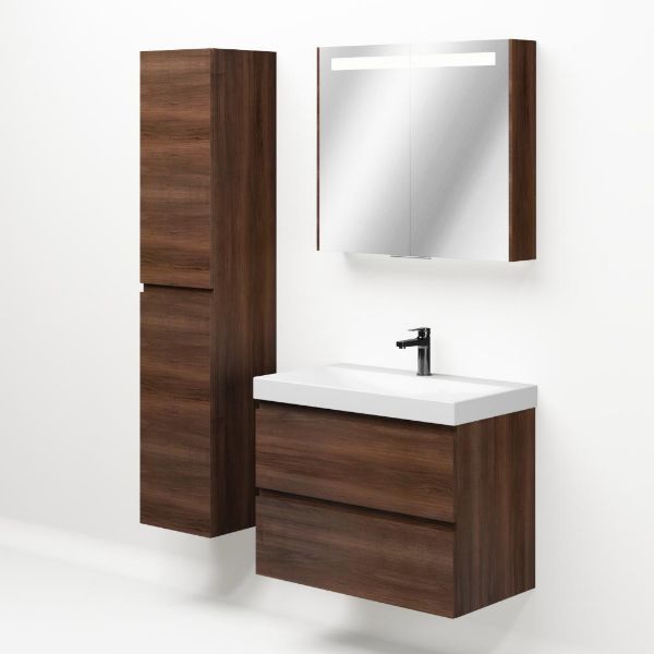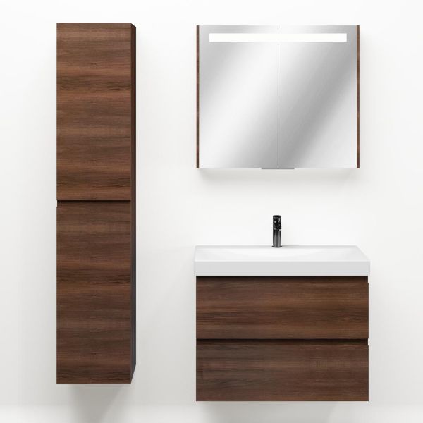 Bellanti Gisella/Jenthe badmeubel 80x46 2 softclose laden walnoot greeploos keramische wastafel wit glans met 1 kraangat