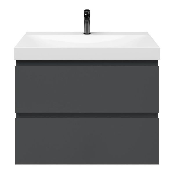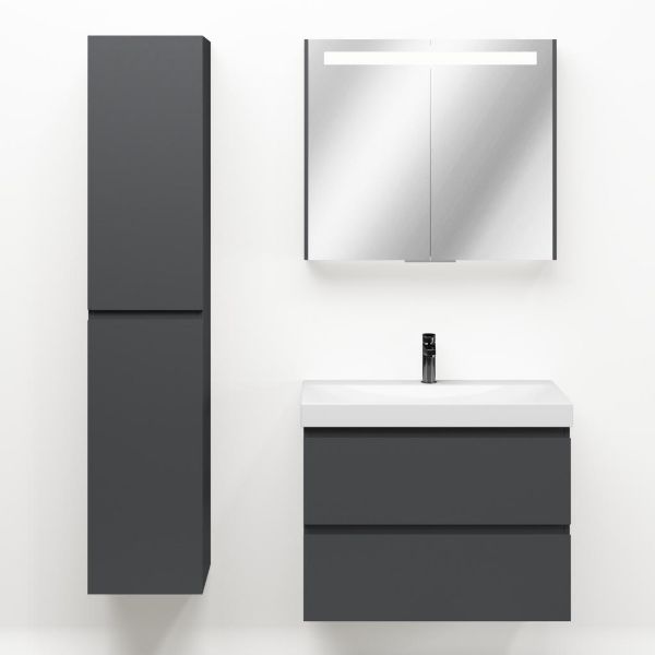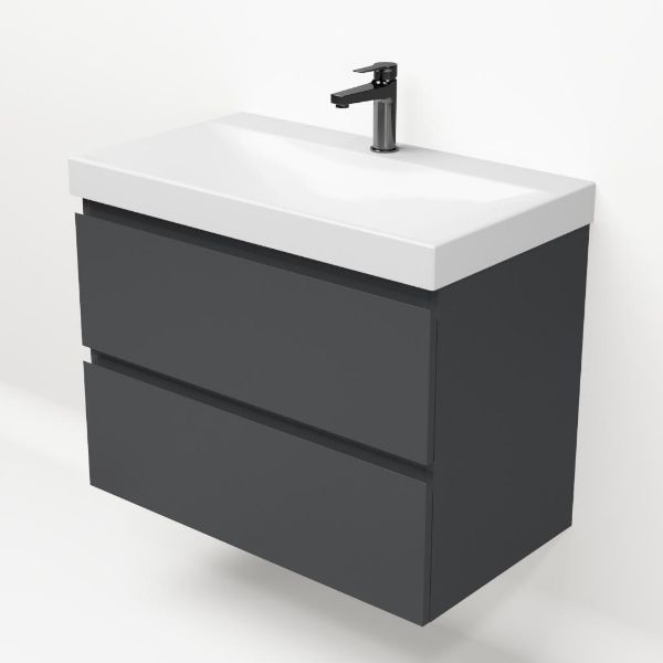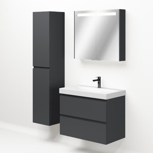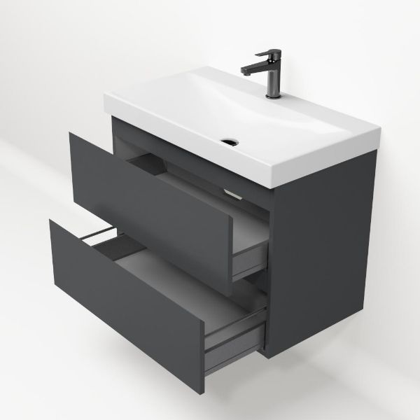 Bellanti Gisella/Jenthe badmeubel 80x46 2 softclose laden antraciet mat greeploos keramische wastafel wit glans met 1 kraangat