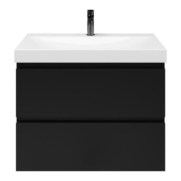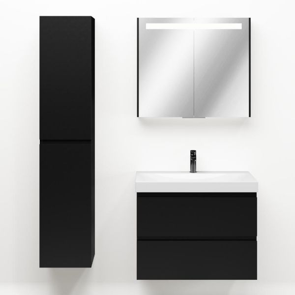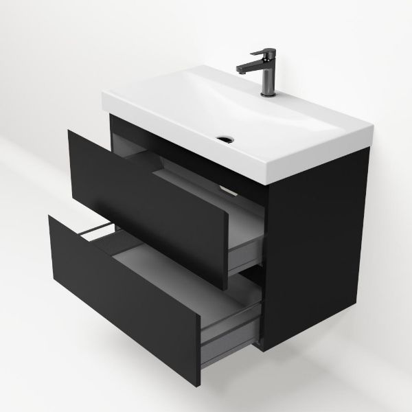 Bellanti Gisella/Jenthe badmeubel 80x46 2 softclose laden zwart mat greeploos keramische wastafel wit glans met 1 kraangat
