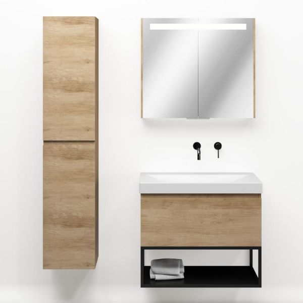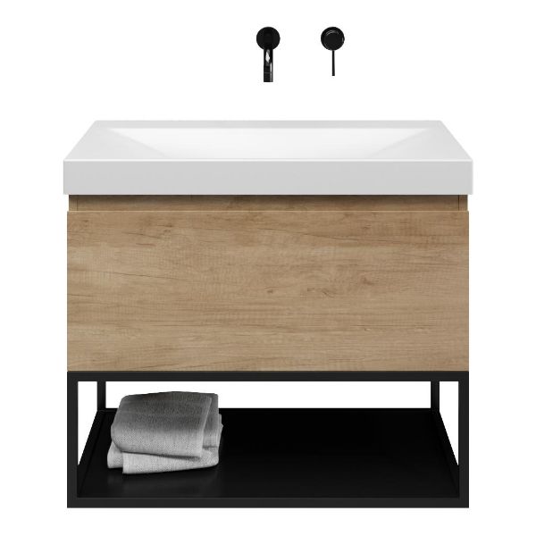 Bellanti Solo/Tela/Jenthe badmeubel 80x46 1 softclose lade olm greeploos keramische wastafel wit mat zonder kraangaten met mat zwart metalen frame