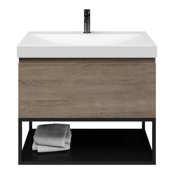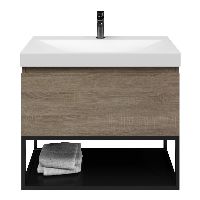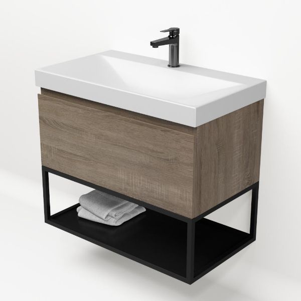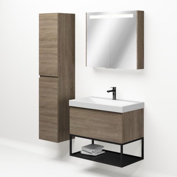 Bellanti Solo/Tela/Jenthe badmeubel 80x46 1 softclose lade eiken donker greeploos keramische wastafel wit glans mat 1 kraangat met mat zwart metalen frame