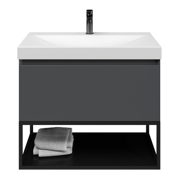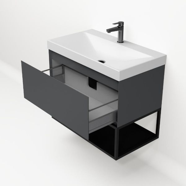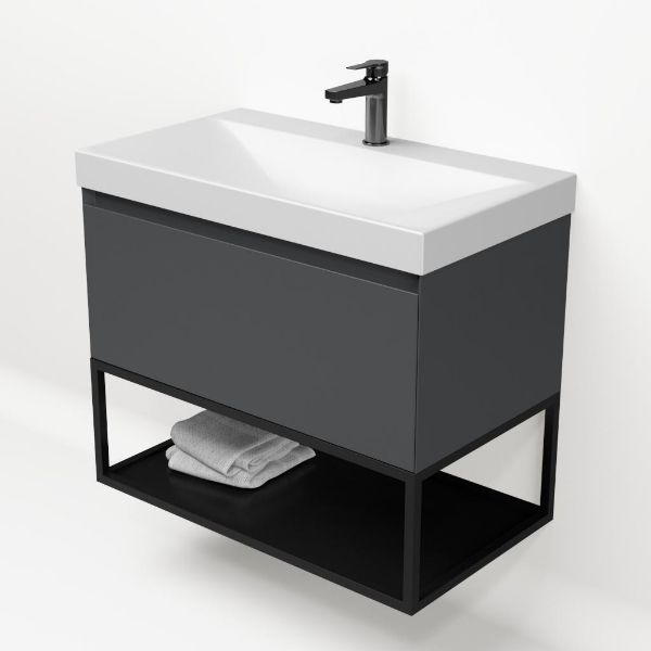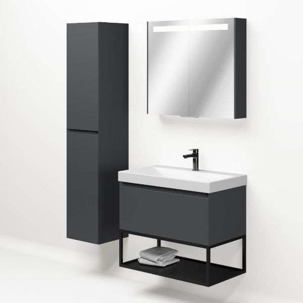 Bellanti Solo/Tela/Jenthe badmeubel 80x46 1 softclose lade antraciet mat greeploos keramische wastafel wit mat met 1 kraangat met mat zwart metalen frame