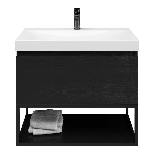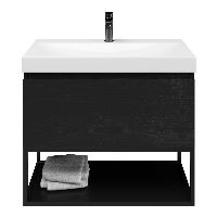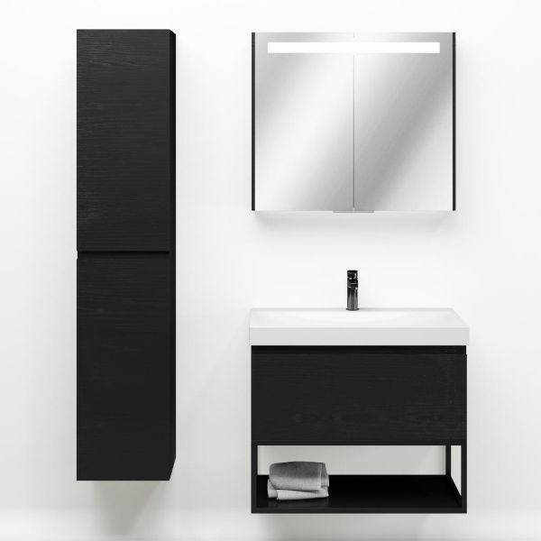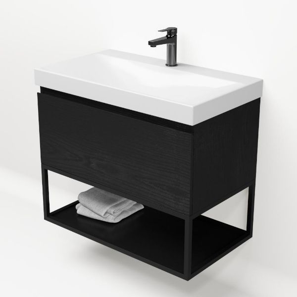 Bellanti Solo/Tela/Jenthe badmeubel 80x46 1 softclose lade mat zwart eiken greeploos keramische wastafel wit glans met 1 kraangat met mat zwart metalen frame