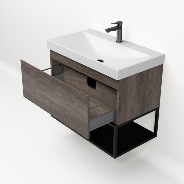 | Bellanti Solo/Tela/Jenthe badmeubel 80x46 1 softclose lade olm donker grijs greeploos keramische wastafel wit mat met 1 kraangat met mat zwart metalen frame |