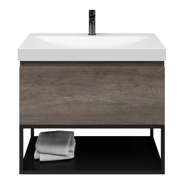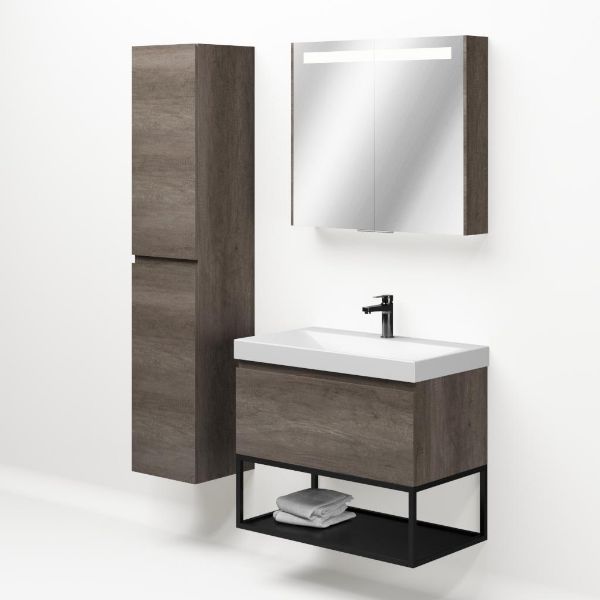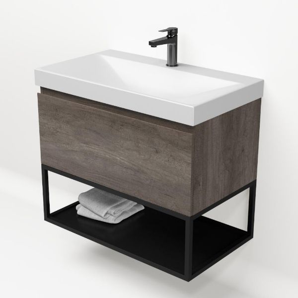 | | Bellanti Solo/Tela/Jenthe badmeubel 80x46 1 softclose lade olm donker grijs greeploos keramische wastafel wit mat met 1 kraangat met mat zwart metalen frame |