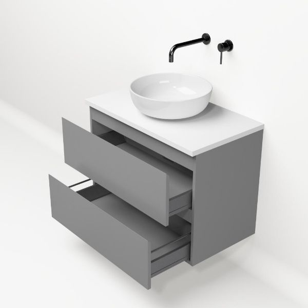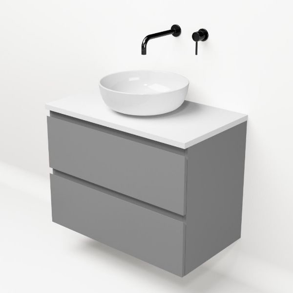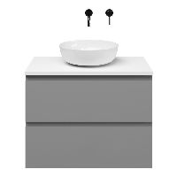 | | Bellanti Gisella/Lamina badmeubel 80x46cm 2 laden mat grijs greeploos met afdekblad 2.5cm dikte mat wit - exclusief waskom : waskom naar keuze |
