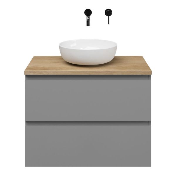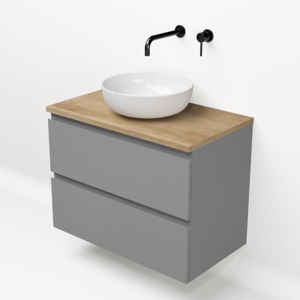 | | Bellanti Gisella/Lamina badmeubel 80x46cm 2 laden mat grijs greeploos met afdekblad 2.5cm dikte olm - exclusief waskom : waskom naar keuze |